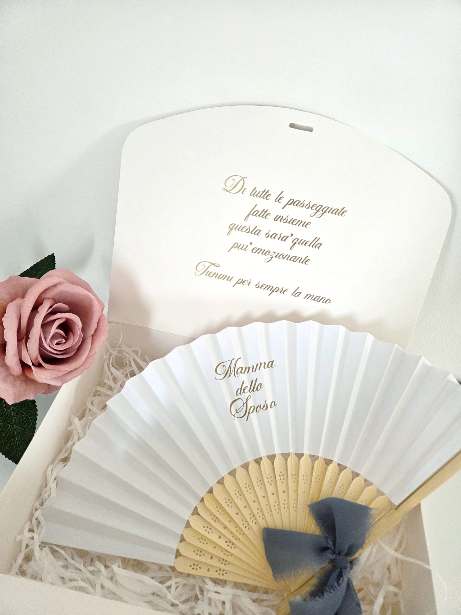 La Mamma della Sposa merita un'attenzione speciale, e merita di avere soltanto lei un ventaglio unico nel suo genere, personalizzato solo ed esclusivamente per lei!
