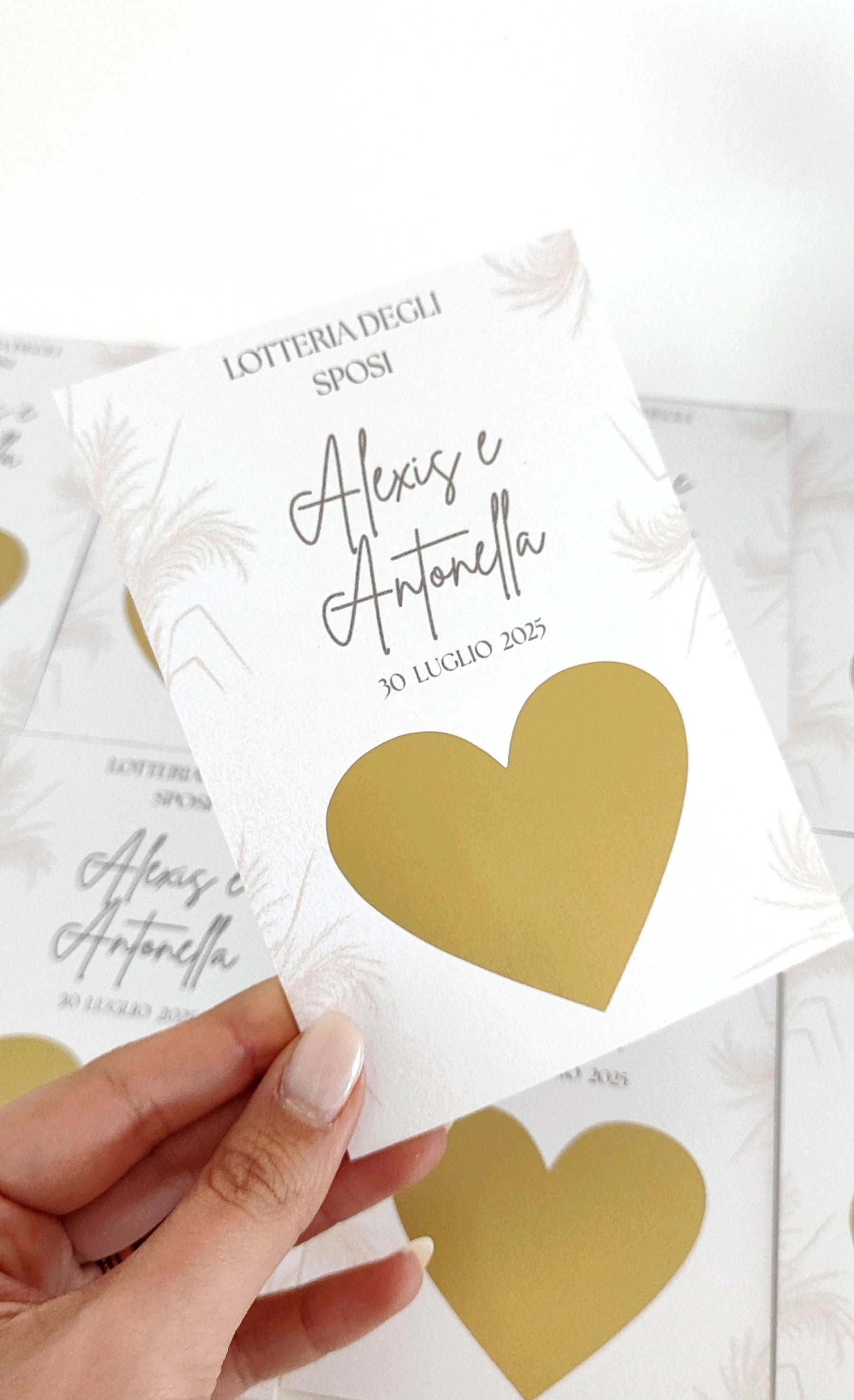 Porta un tocco di originalità e divertimento al tuo matrimonio con i nostri esclusivi gratta e vinci personalizzati! Un modo simpatico per coinvolgere gli invitati, rompere il ghiaccio o regalare piccoli premi durante il ricevimento.