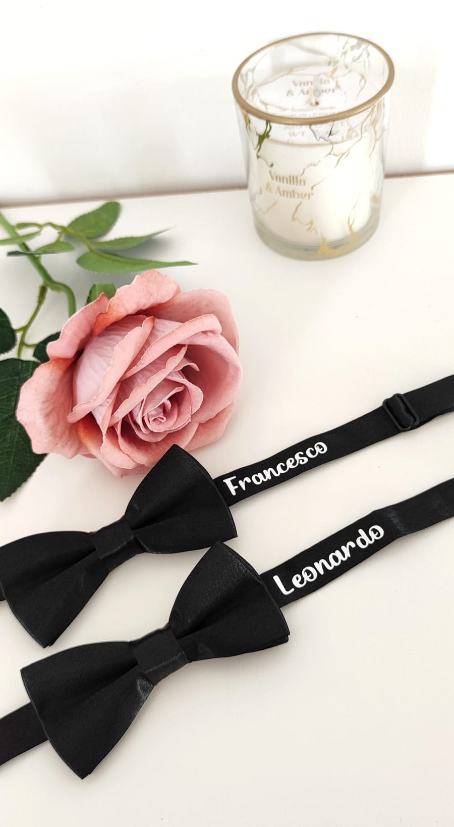 Questo papillon personalizzato per bambino unisce eleganza e raffinatezza, perfetto come regalo nella box per la proposta paggetto.