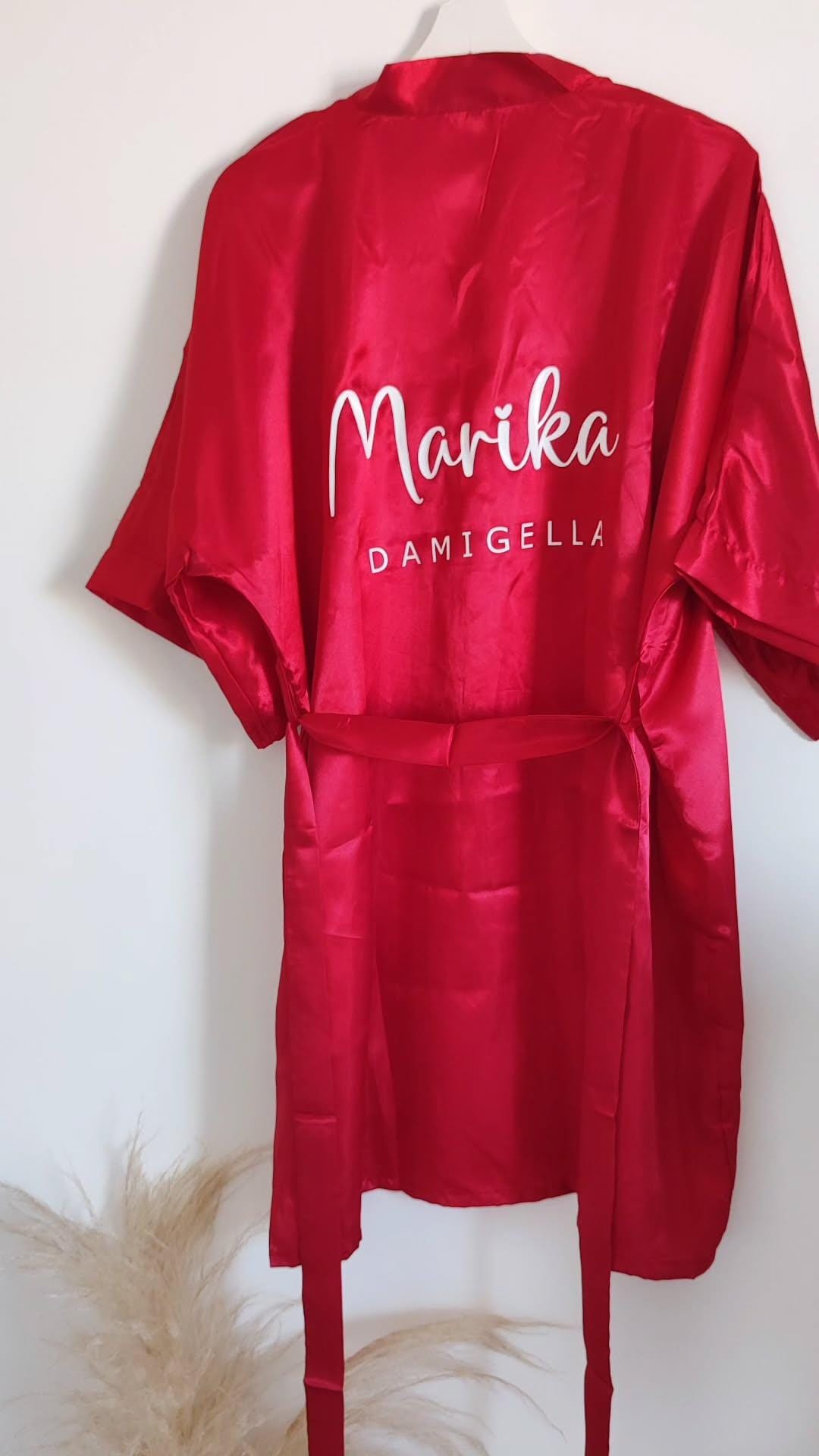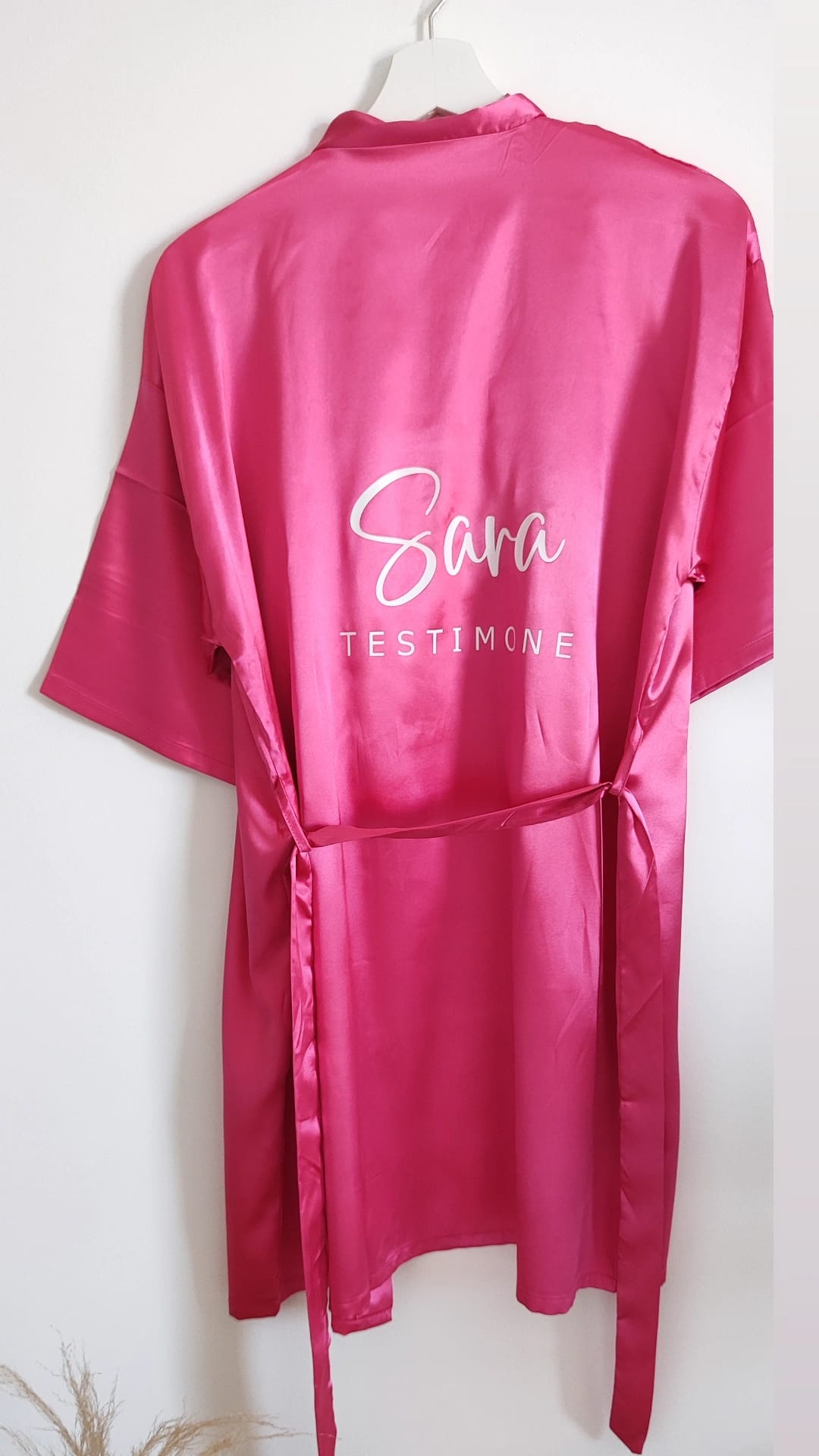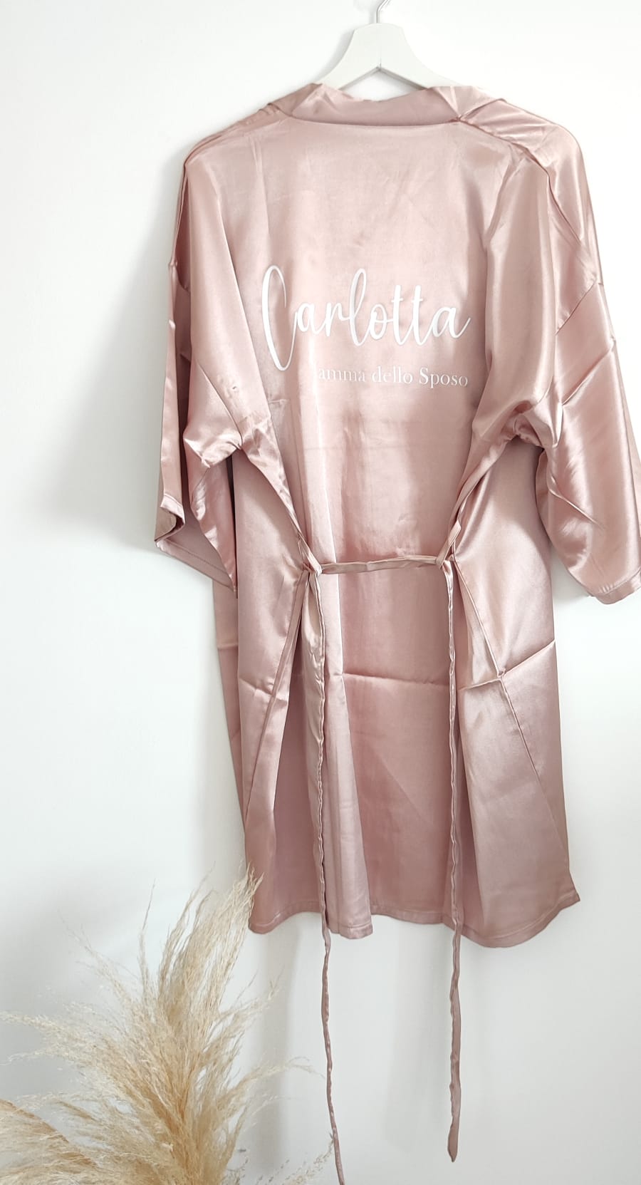 Rendi ancora più speciali i preparativi del grande giorno con le nostre vestaglie personalizzate, pensate per sposa, damigelle, testimoni, mamma della sposa, sorella della sposa e tutte le persone più importanti al tuo fianco. Morbide, raffinate e completamente personalizzabili, sono perfette per il bridal morning, il servizio fotografico, l’addio al nubilato o da inserire all'interno delle box proposta personalizzate.